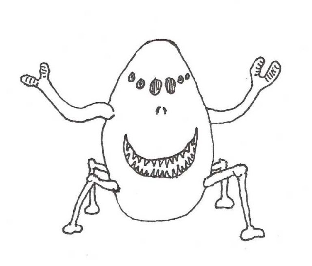 The evil egg is my favourite. That last picture, the one at the bottom of your post, is a bit scary, isn’t it?