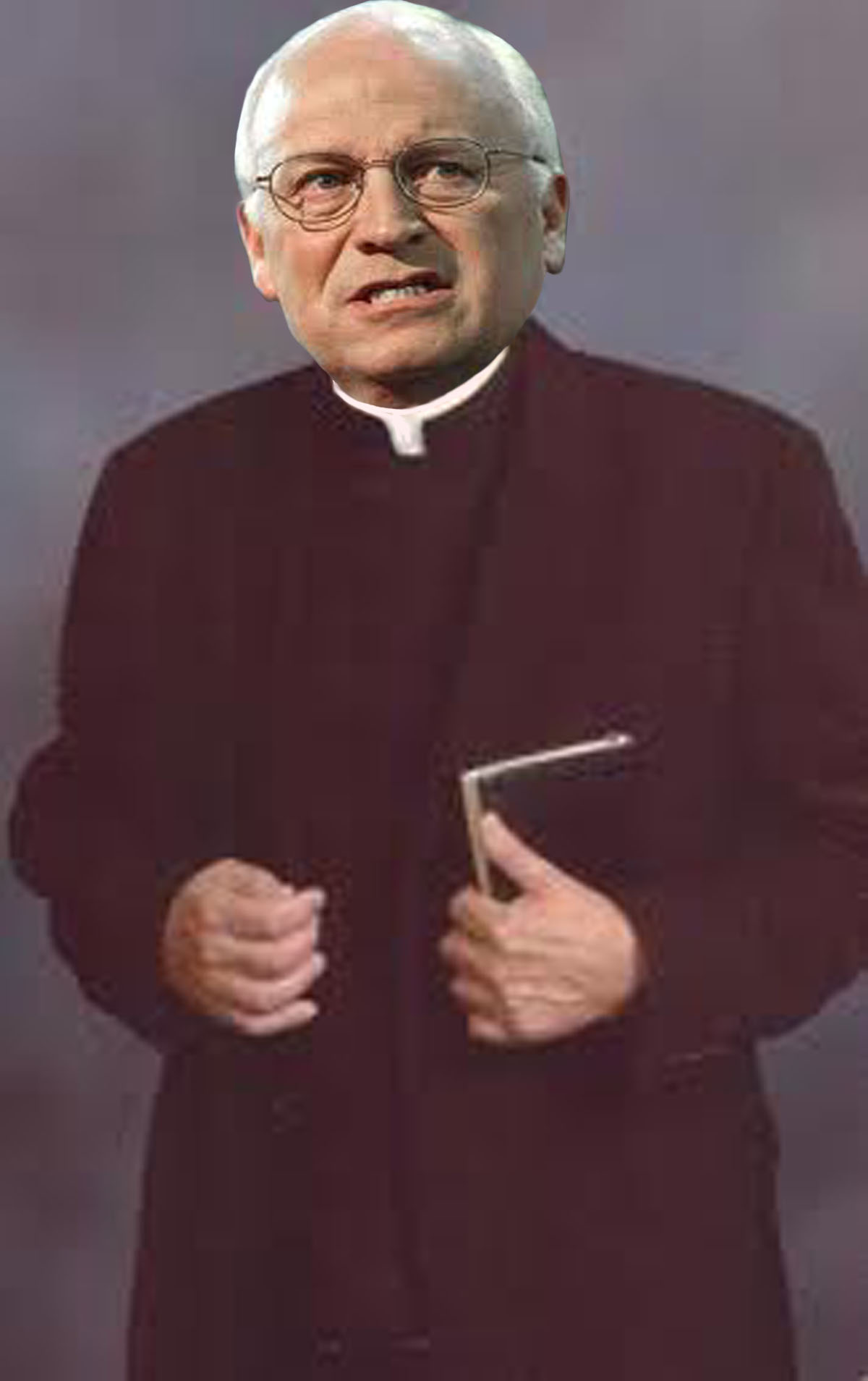 Meet the Right Reverend Father of the Church of the Sacred Bleeding Heart… (It might be bleeding because they just tore it out of a dead guy to stick it inside Dick)…
