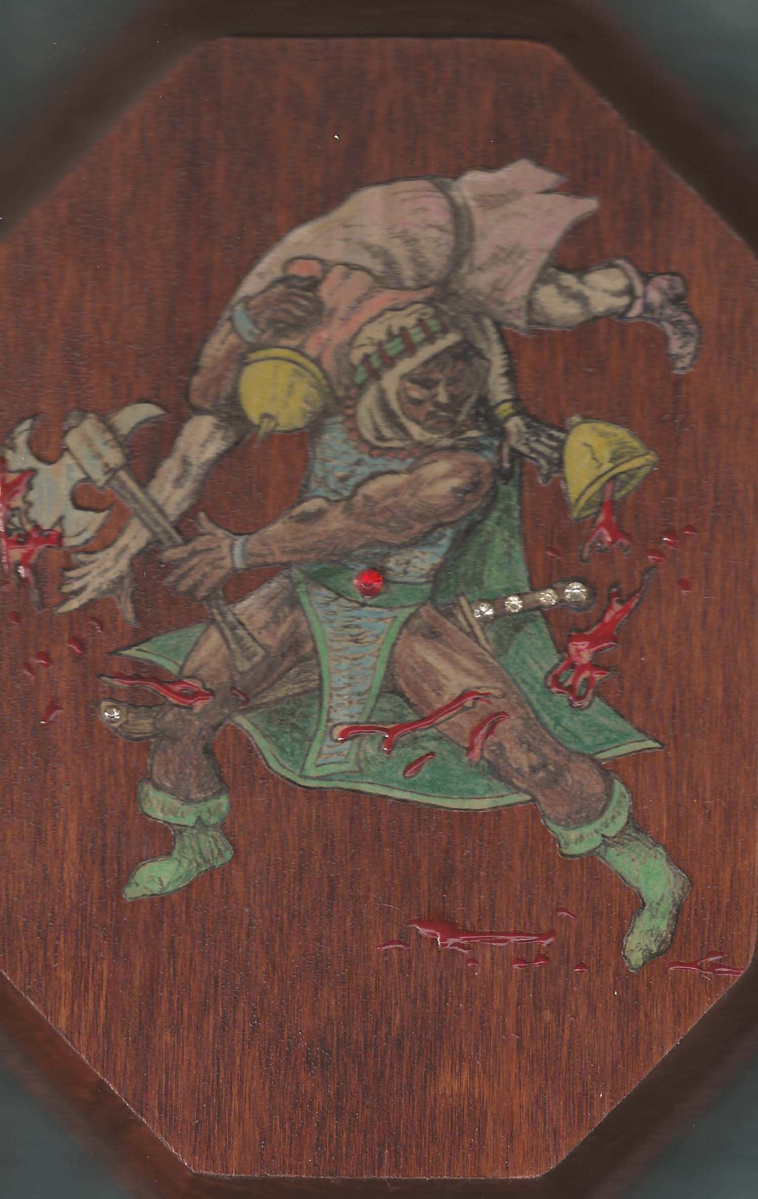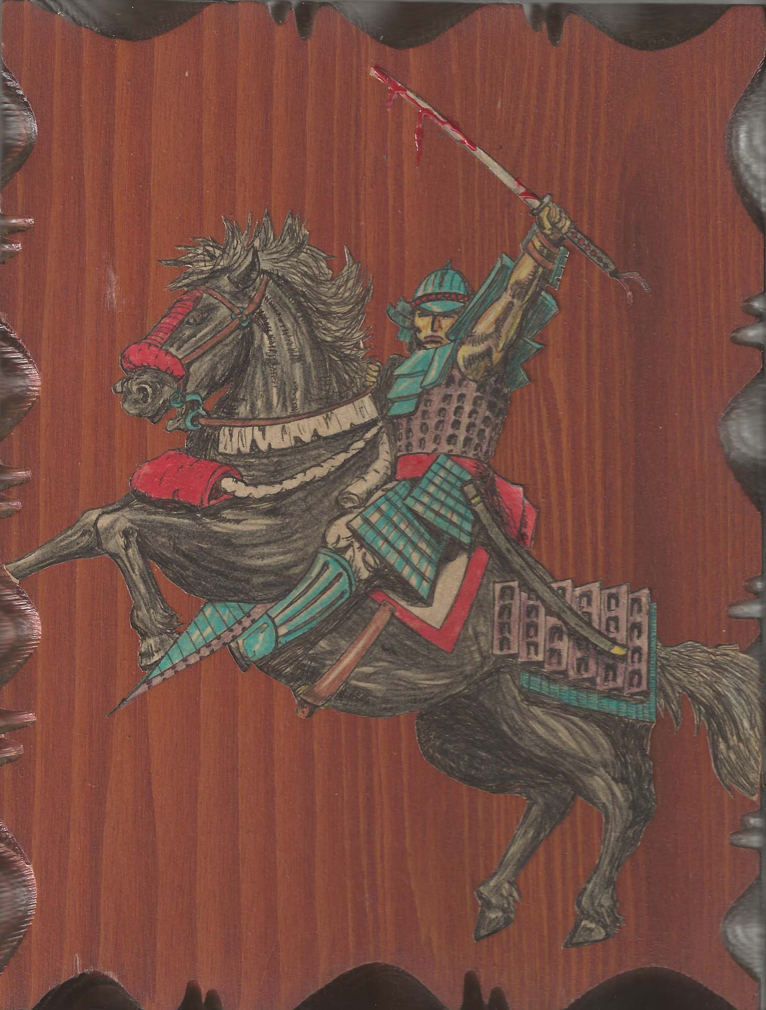 I notice I used the thick paint for blood again on this one. I wonder if I added that later from my t-shirt paints? I can’t really remember, but I do know that horses are hard to draw.