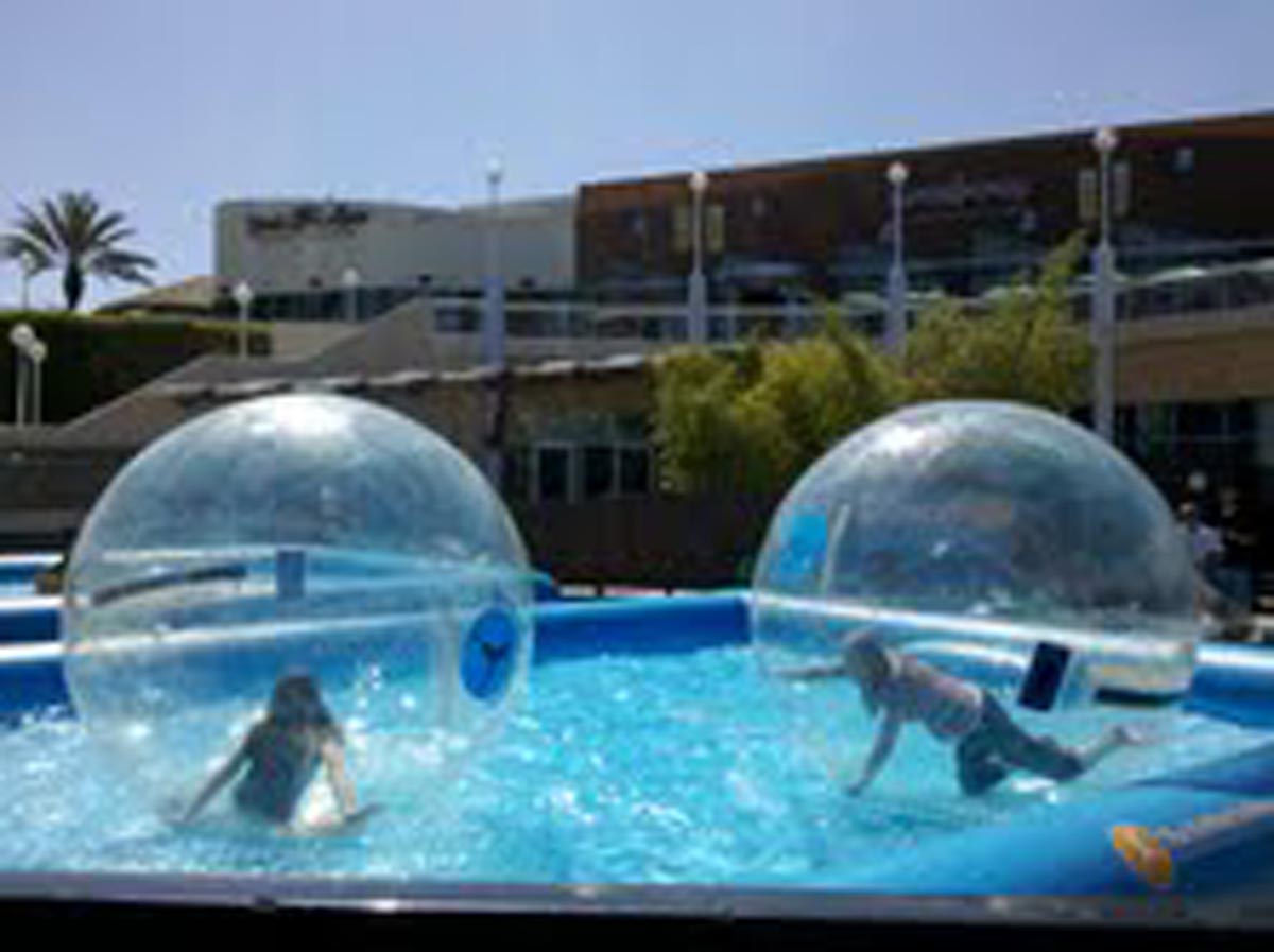 • Oh, I should have read further. They were renting them out near the beach. They have a zipper, and they blow them up with a reverse leaf blower thing. But the walking part is not easy. Or so they say.