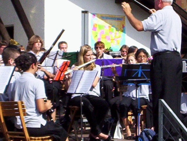 The Ambassadors of Music tour lasts almost three weeks. The best musicians from marching bands all over the state are chosen to represent our country, and the highlight of the trip are the concerts. They played in a park in London, a park in Paris, a town meeting hall in Crans-Montana, Switzerland, the town square in Seefeld, Austria, and the town square in Rothenburg, Germany. There were some interesting side trips as well.