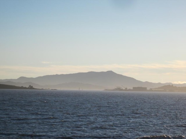 There she is… rising above that little hill in the center of the picture, way over across the water.