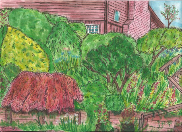 Yay to childhood homes, memories and forts! Great painting as well. I find watercolor to be more difficult and less forgiving than acrylic.