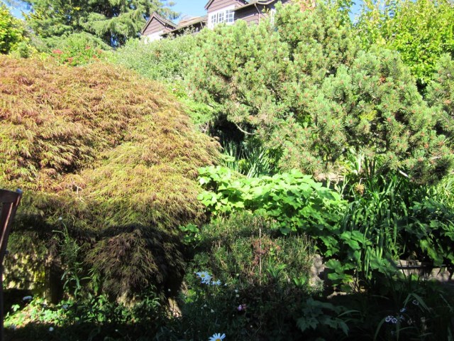The back yard is sort of terraced. There are flat levels between the sloping hillside. There are often more flowers, but this was taken in summer. That house poking up in the back of the picture is the house my friend Chris moved into when he was just a kid. Our back yards are sort of connected. You can imagine how great this was when we were young.