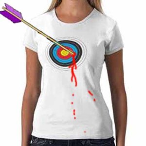 Here is our lovely model, Brittanee, showing off the shirt that the archers must now wear during the competition…
