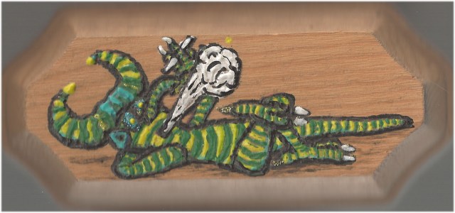 Here is one last little picture of an alien enjoying a smoke. I painted him right on to the wood with some T-shirt paint, back when I had the custom T-shirt thing going on. I should put him in my novel…
