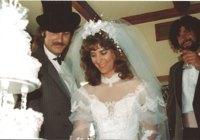 Who is that tall, handsome fellow looming in the background, I hear you all wondering? That is our friend John. Who was also the best man at our wedding. John and Cherilyn grew up near each other in San Diego, and were friends in school. They also got accepted to U.C. Berkeley, and moved to the Bay Area together… well, not together as a couple, but you see what I mean. He protected her like a brother, and since he is bigger than me by a good few inches, and you may recall that I am 6 feet 4 inches tall, that is pretty good protecting. So a few years later, that is how I met Cherilyn when we were both working at Tower Records in Berkeley, me in the art department and her downstairs doing whatever it was those people did… Cherilyn and I talked to Whoopi Goldberg in the store once, and Cherilyn sold a Stevie Wonder album to Carlos Santana. Plus we got free tickets to all the best rock shows. It was a cool place to work, but I will do a name dropping post some other time.