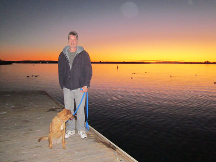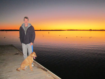 That is me and my dog. The dog is a little bored and yawning after her long walk. She is having a good moment. Then she noticed the birds…
