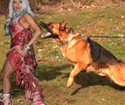 I did a series of posts about jobs that famous people might have been good at if they had never become famous. The idea of Lady Gaga helping to train attack dogs… wearing her meat dress… would have been mildly amusing if I had just explained it to you. But if you add the picture…