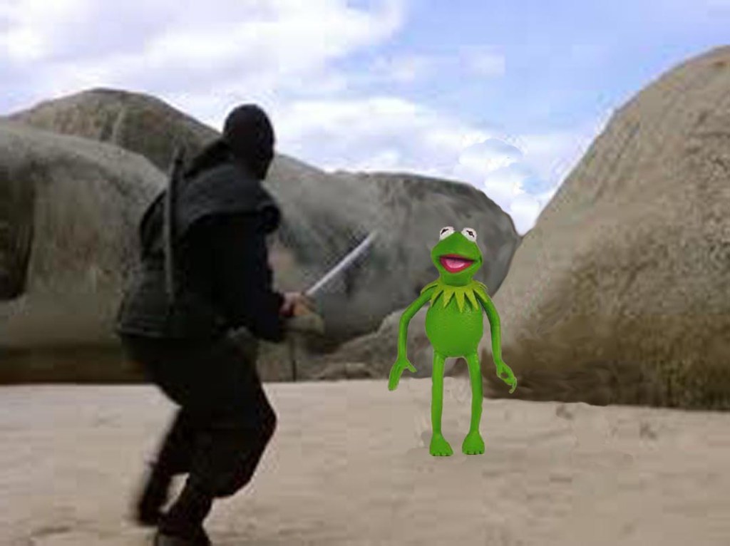 It isn’t pretty… who knew Kermit could use a sword like that?