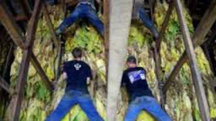 Yeah, it looks a lot like that there. Now you go to the hanging barn. Tobacco country is full of these big barns. They look like tall airplane hangers. This is where the tobacco is hung for drying. And there is no fun way to do this.