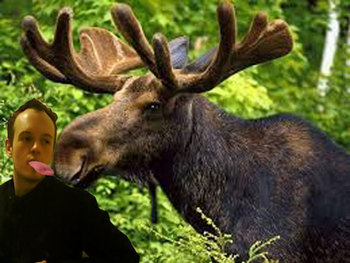 I promised the moose-man that I wouldn’t go out of my way to embarrass him here. But if I was going to do that, I would have just put the other picture of him I found on his blog up here on my blog, without doing anything to it in Photoshop…