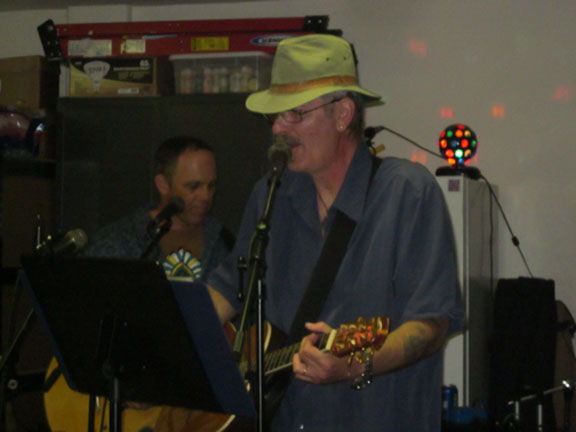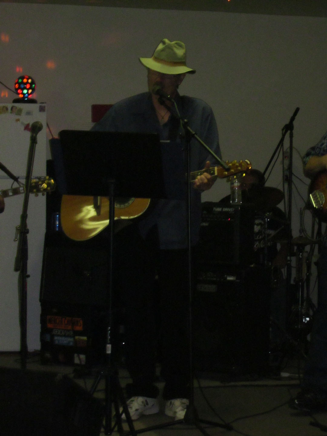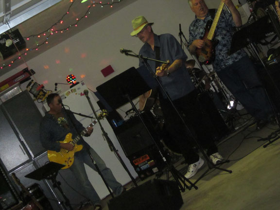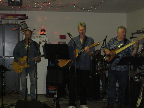 Oh yeah… Christmas lights, a little light ball thingy, a small strobe light… all that was missing was a lava lamp and some black lights. Without a lead guitar, my brother Henry filled in with some pretty hot licks. Which meant that I had to carry a lot more of the rhythm guitar. But we pulled it off. Henry, you rock!