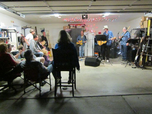 I never even learned his name. I was so busy freaking out that I didn’t have a lot of time to meet people at the party. I was worried because the guests for our first gig, besides our families and a few friends, were a bunch of local musicians that Lance knows. Playing in front of musicians when you haven’t played in front of people since the 1970’s is a little intimidating. Some of these people are in bands that have actually sold albums… or CD’s… or whatever you call it now. In fact, there were people there whose songs we play. Talk about stress. But we did okay.