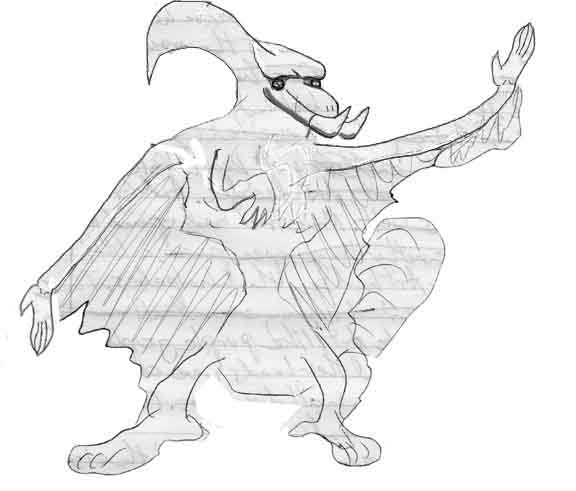 It was just a rough outline to remind me that she has four arms… two long and two short… and wings and a flat, beaver-like tail. You can still see the lines from the note book I was writing the story in. Yes, I write it out by hand for a few pages and then type it up. It just works for me.