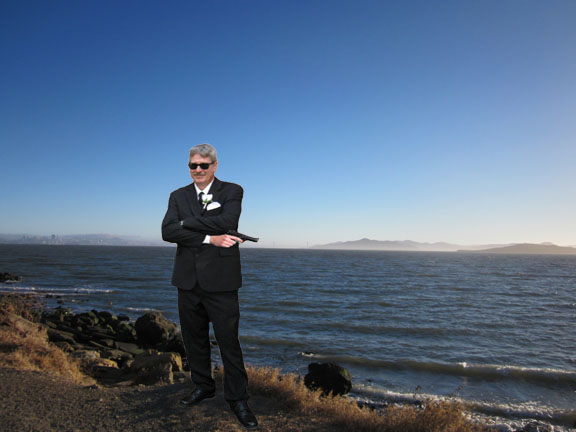 He seems awfully well-dressed for a trip to a… hey… that looks like me also. Why am I wearing a suit? And is that a gun I am holding? This is too weird. Can I take one photo that I don’t somehow mess up?