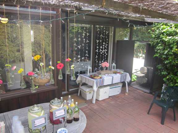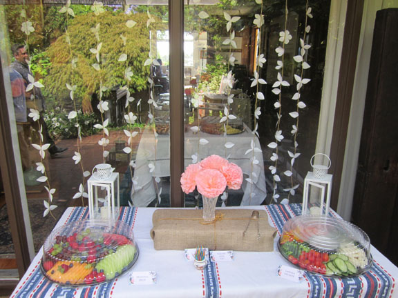 The food she picked was awesome. And those flowers on the table were made from those dyed coffee filters I was telling you about. We had the nieces and nephews helping us fold them into the flower shapes.