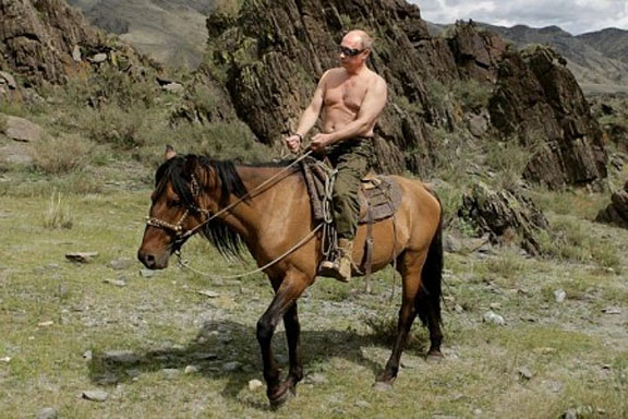 I dunno, i’m pretty straight, but those pictures of Mr. Putin are creating some odd stirrings deep inside. Maybe we should propose a three-way: the American-Canadian-Russian Gay Summit, no shirts allowed. Yee-ha! Ride it Vlad! Ride it hard!