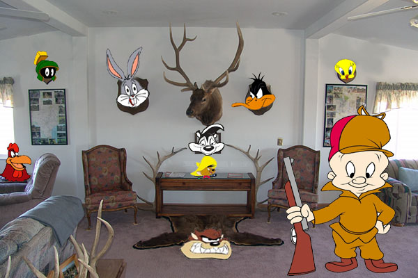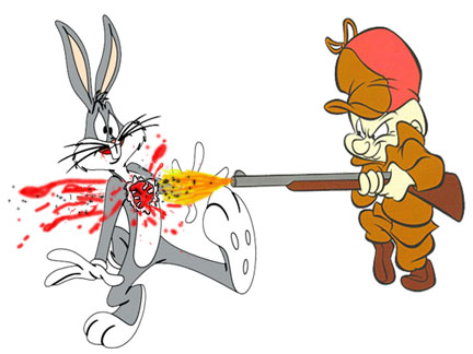 So how was I to know that when I clicked on the post to read more, there would be a picture of Elmer blowing poor Bugs’ guts right out of his body.