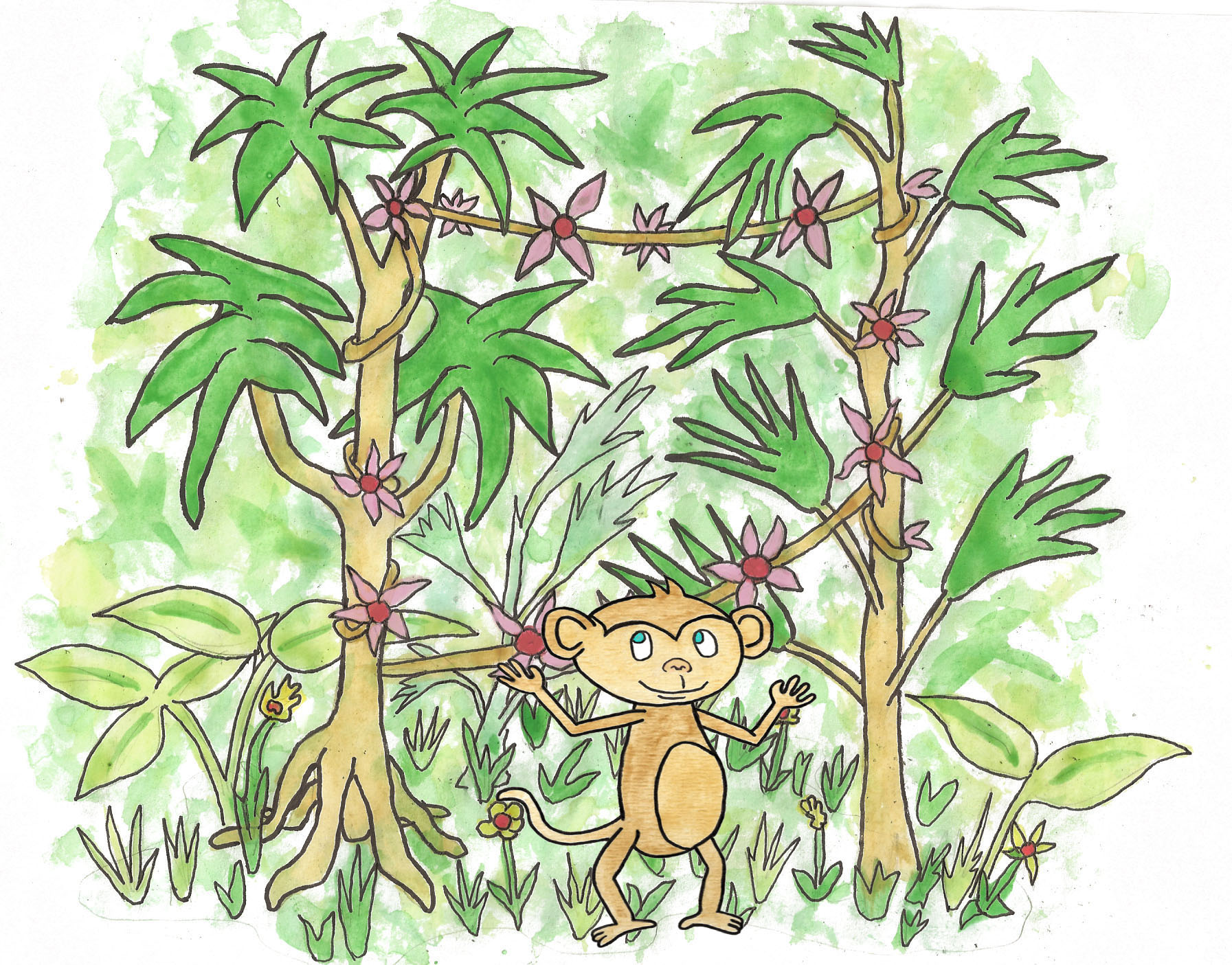 3. I like the top one, what about having the monkey hanging from a tree?