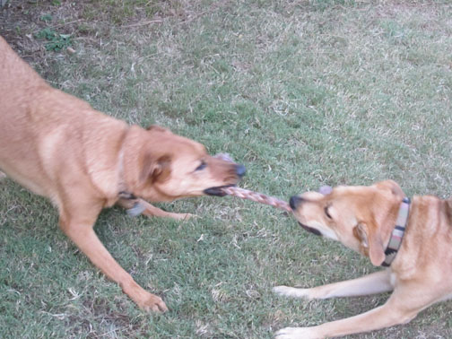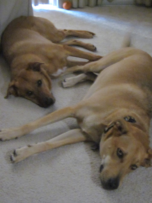 So I have some pictures of dogs for you. This will not overheat your brain in any way, shape or form. We were dog-sitting Riley for the last few days. Riley belongs to my wife’s aunt and uncle. And she is our dog’s best dog buddy in the whole world.
