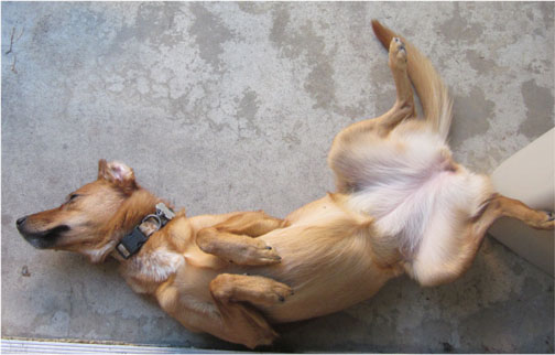 My Bandit liked to sleep on his back too! In the later stages of his life we allowed him to sleep on the bed with us. He would go to bed with the first of us & take over the whole other side. Then when the other person wanted to come to bed he wouldn’t stir. Not in a mean way, he’d just look at you with his big eyes & plead with you not to disturb him. Once you finally got into the bed, he would take up the whole bottom of the bed by sleeping between us on an angle. But not too far down because he liked to sleep on his back & didn’t want to roll off the bed.