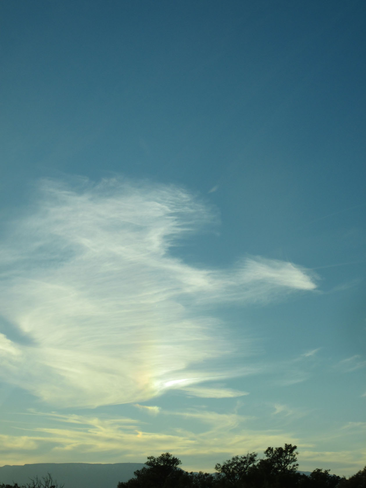 a 5That picture I took because the cloud reminded me of a big phoenix bird… and the bottom of the cloud was glowing like a rainbow even though the sun was nowhere near it. You can’t see it in the photo that well, but it was cool.