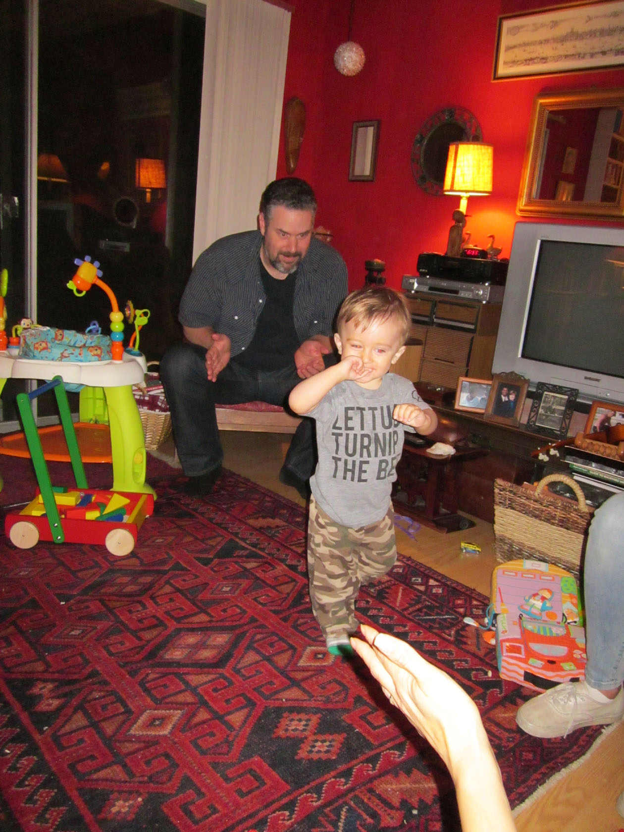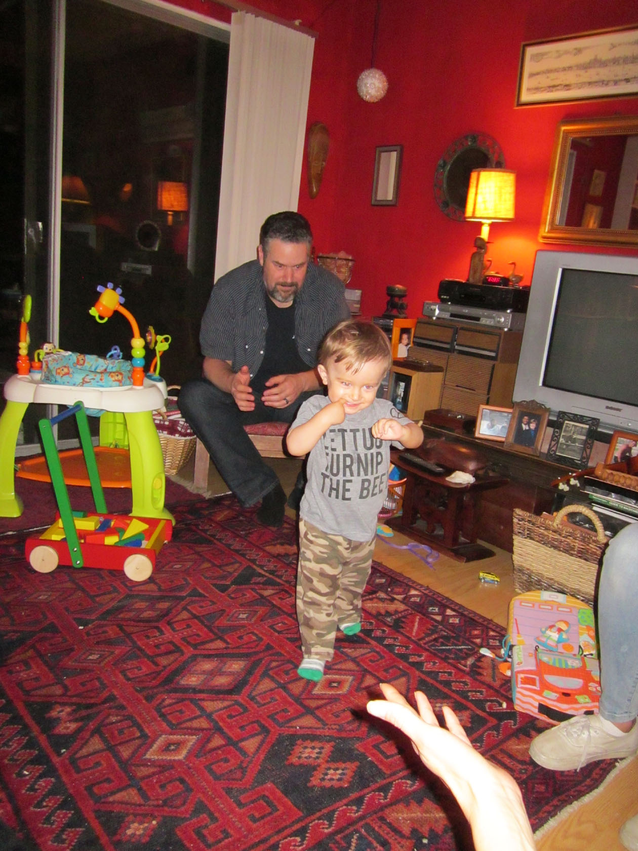 a 7We visited them again that evening at John’s mom’s house. Look at Willie walking. And look how proud Johnny is. He is also ready to catch Willie if he stumbles. What a good dad. I remember those days.