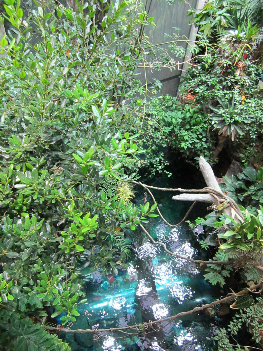 Down below that sparkling pool of water is a plastic tube you can walk through. It is fun to look at the rainforest fish from below.