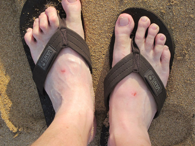 1. Not the prettiest feet I have seen lately but I will let that go. It sounds like those size 15 feet of yours served you well during your vacay. You should really be kissing them – if you can reach them.