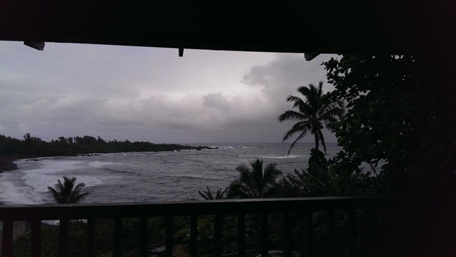 Okay, the clouds sort of hid the sunset… but we saw plenty of sunsets on our trip. And as you can see from this picture taken the next morning, the clouds sort of feel like they are an important part of the landscape in Hana…