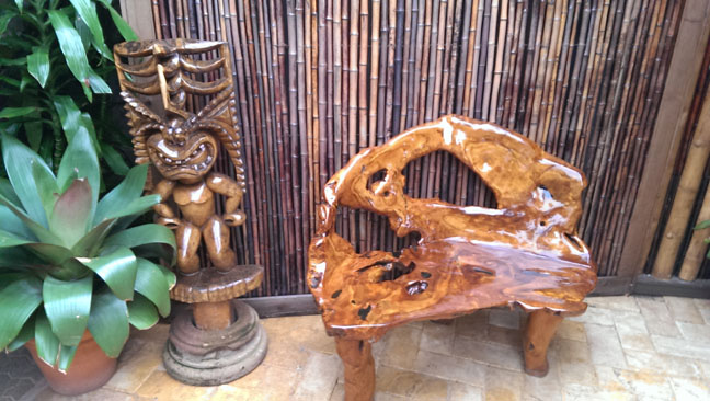 It is like eating in Tarzan’s tree house. It seems to be cobbled together from old bits of sailing ships… including the sails. There are big gaps in the roof, surrounded by rain gutters, and when it rained, you could hear the water gurgling around up there. And there was a lot of exotic tropical wood and bamboo. I can’t really explain it, but it was nice. It was also full of artistic flourishes…