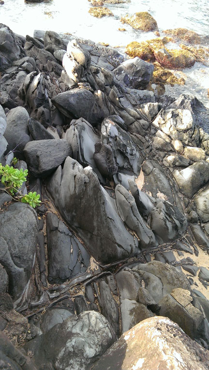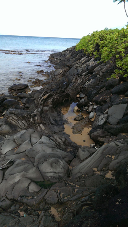 It is also suspicious that the bays where the sand is are cut back into the island. Why are some parts of the coast different from other parts? While one of you clever people solves this mystery, I will do some more posts about our walk, and show you more lava… and tide pools…