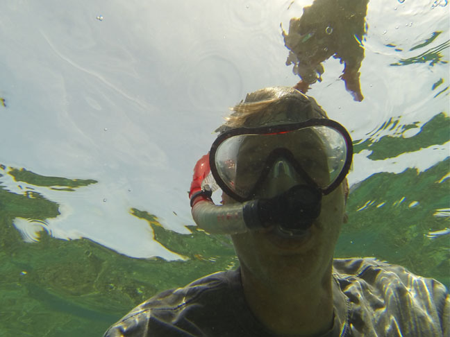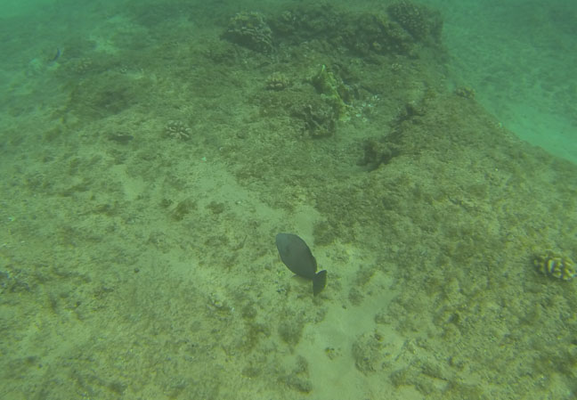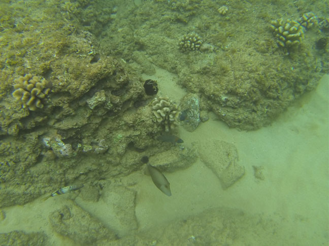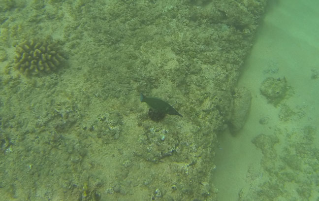 Hey… look at that… the refraction makes it look like I am touching myself on the head with my own disembodied hand… cool… Anyway, what I am learning is that even with the photos and a dive card, it is really hard to identify all the fish…