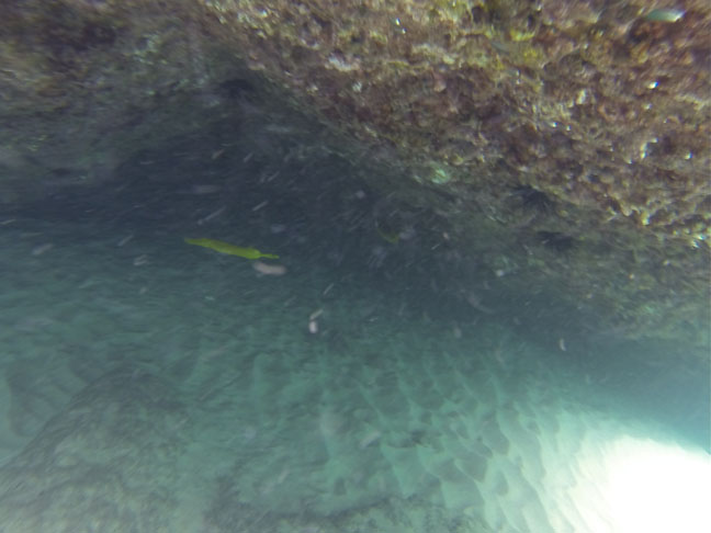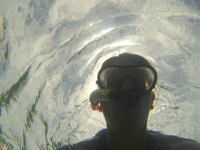 Oh, next time you do snorkeling, get a plastic bag, a few crackers or bread, put it into the plastic bag, let water soak the cracker and turn it into mush, and keep the bag closed, then pump out small clouds of this soaked bead mush periodically, then close the bag again. This will attract fish to you, they won’t try to eat out of your hand, and a single cracker can last for a few minutes.