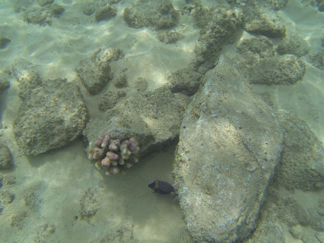 Oh crap… There is another boxy, spotted fish… so that is either a spotted boxfish… which you must admit is a pretty good name for a boxy, spotted fish… or it is a Hawaiian spotted toby… or a female spotted trunkfish… screw it… the next time I go to Maui, I am going to shoot every damn fish I see with a tranquilizer dart, put it in a cooler full of water, and take it to the aquarium to show to an expert… oh… wait… I could just go to the aquarium and see the fish in the tanks… I bet they have signs telling just what kind of fish they are… but somehow, that seems like cheating. I suppose I could look all these fish up on the interwebs and compare them with better pictures… but that might suck some of the fun out of these posts…