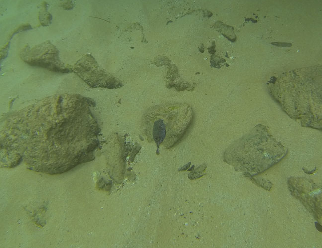 Look, there is another one right over there… Oh… you are a little cutie… and according to my dive card, you are a female spotted trunkfish… or maybe a Hawaiian spotted toby…