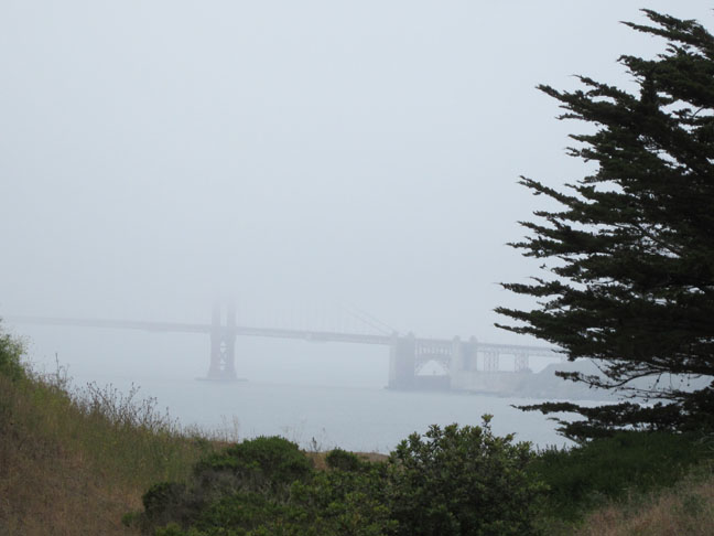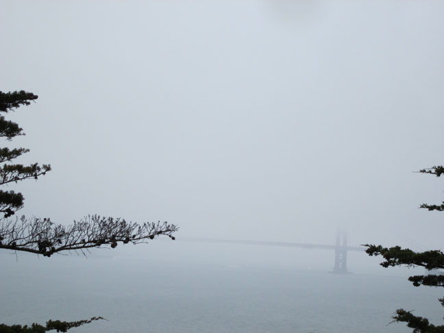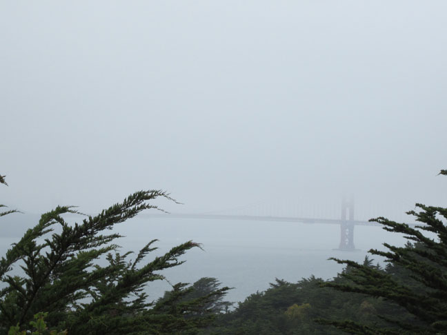 It was an awesome morning for a walk. The world was shrouded in that famous San Francisco fog, and you could barely see the Golden gate bridge.