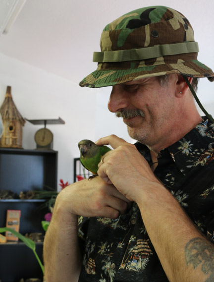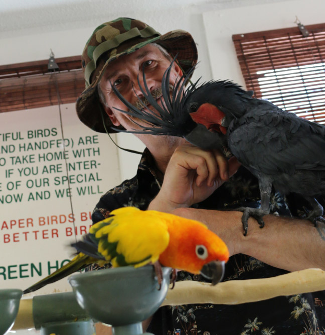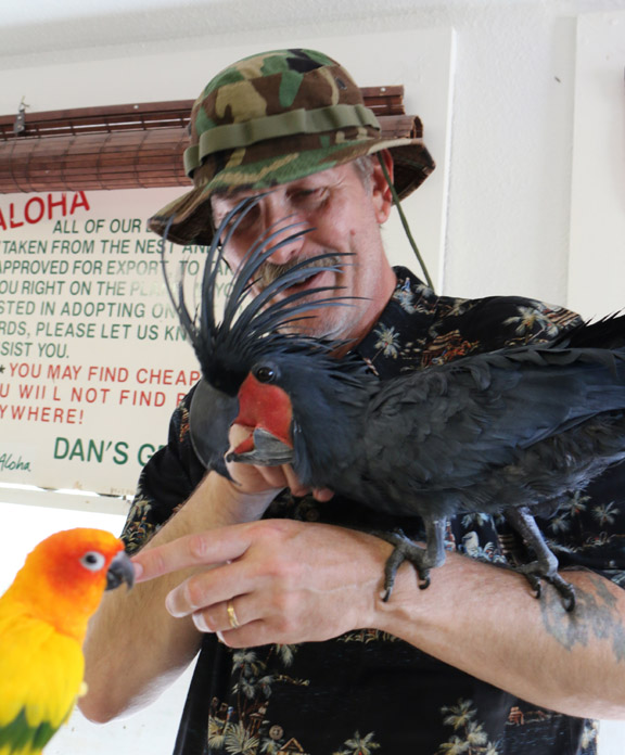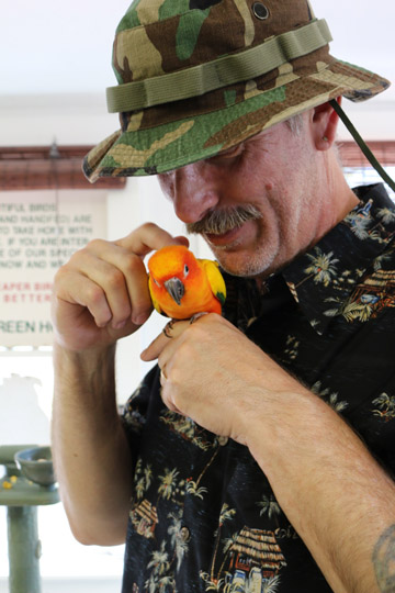 Hmm, you fit right in there Art. Have to be careful that when the shop closes, that they don’t put you in a cage and usher the birds out the front door, Ha! They ate beautiful aren’t they? I’m surprised that they are so calm.