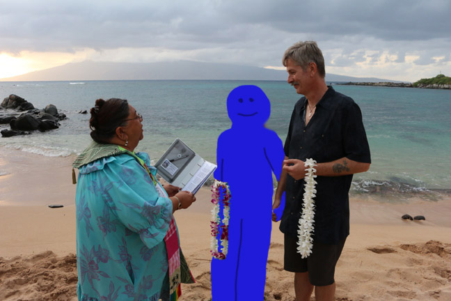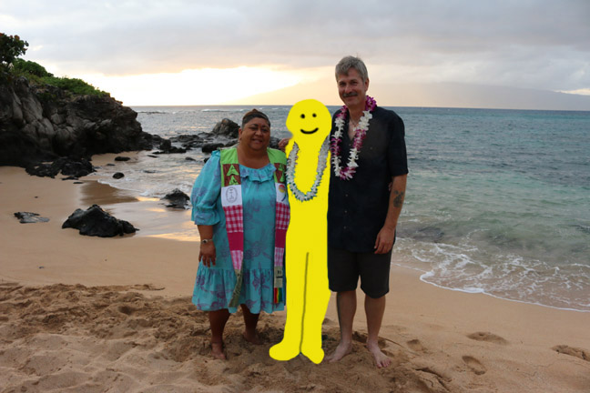The ceremony was performed by this lovely lady, who could not have been more Hawaiian if she was covered with pineapple and standing on a surfboard.