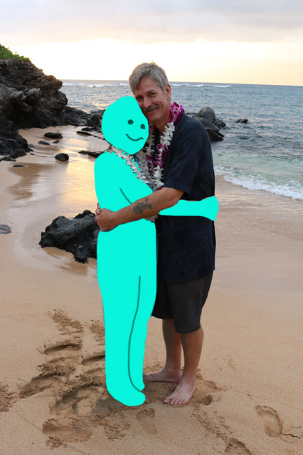 We did the ceremony at sunset on the beach. Just after we finished, a sea turtle came right up to the shore by those rocks to say hello.