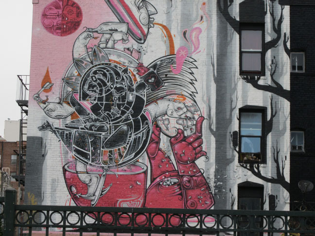 I love the painting on the wall of the building. But I would go nuts in that much traffic! Not to mention all that exhaust everyone is breathing!
