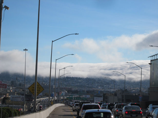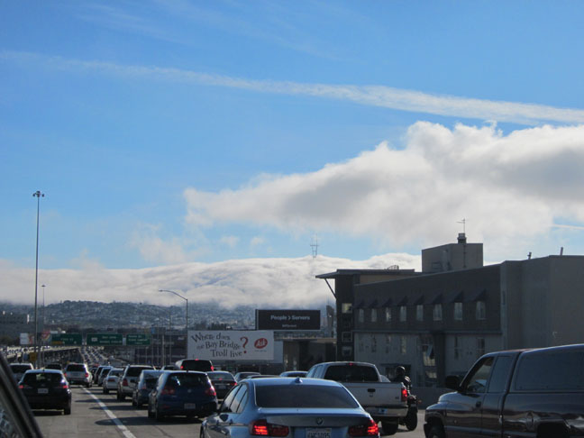 Anyway, cool pics. Really gives a sense of the size of city. Love the fog “on cats’s feet” (funny how tall structures stick out of the top of the fog – looks surreal). I’m from Halifax and we have similar fog issues there. The BATS truck is particularly poignant, n’est pas? Traffic driving you bats? Ha! Have another burrito – lots ot go around. 🌯 😀