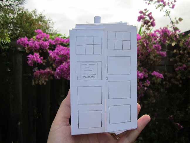 Why yes, that is indeed a handmade paper Tardis you see before you…
