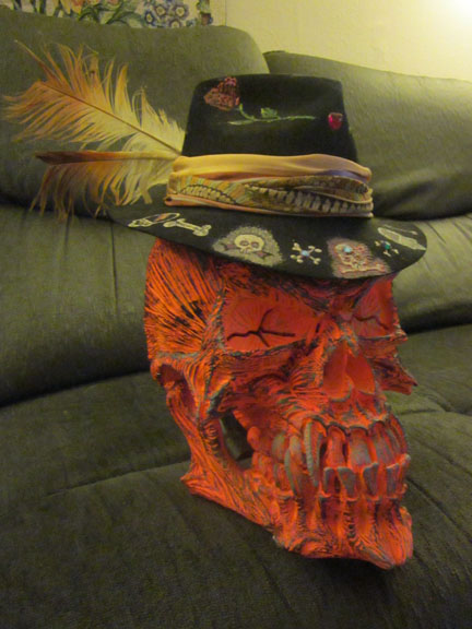 I love that hat. I used to have this fake rose with a battery in it. The rose had those clear filaments in it that lit up and changed color. That hat was awesome in a dark show, especially if you were… uh… in the right mood… so to speak.
