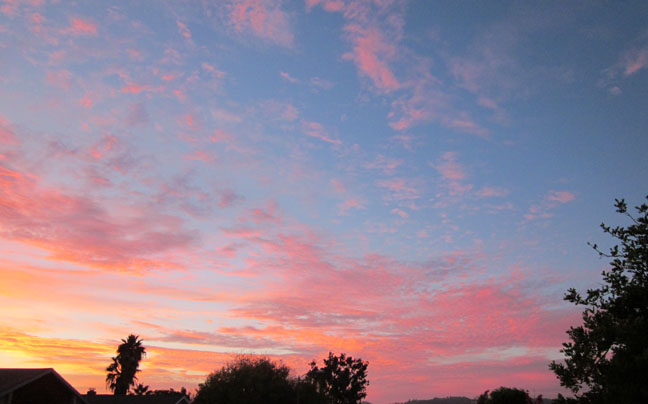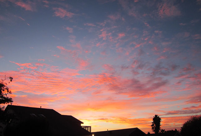 I personally don’t believe sunrises actually happen. I go to bed, it’s dark. I get up, it’s not dark anymore. It’s like the sun just magically appears halfway up the sky! None of this too-early-for-God slow rising crap – there’s a switch somewhere, I just know it. 😀