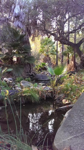 The thing… good, I was worried that this post might not have a thing… is that San Diego, despite the palm trees and beaches, is really a desert. So when you hike here, you see a lot of dry, crackley brush and sometimes cactus. But occasionally, down in the gullies and valleys and washes, you find streams that stay wet enough to support some real vegetation.