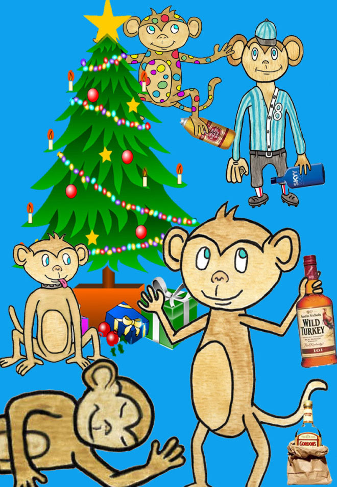 But I honestly can’t remember why I added those monkeys to a picture with booze and a Christmas tree thrown in… (I blame the crack squirrels in my head… they come up with so many weird ideas that even this doesn’t stand out)…