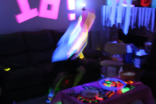 But instead you get to look at a whole bunch of pictures of the black light party we threw for her…
