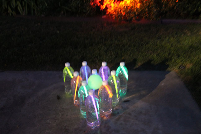 We also had glow in the dark bowling. You just put glow tubes inside water bottles.